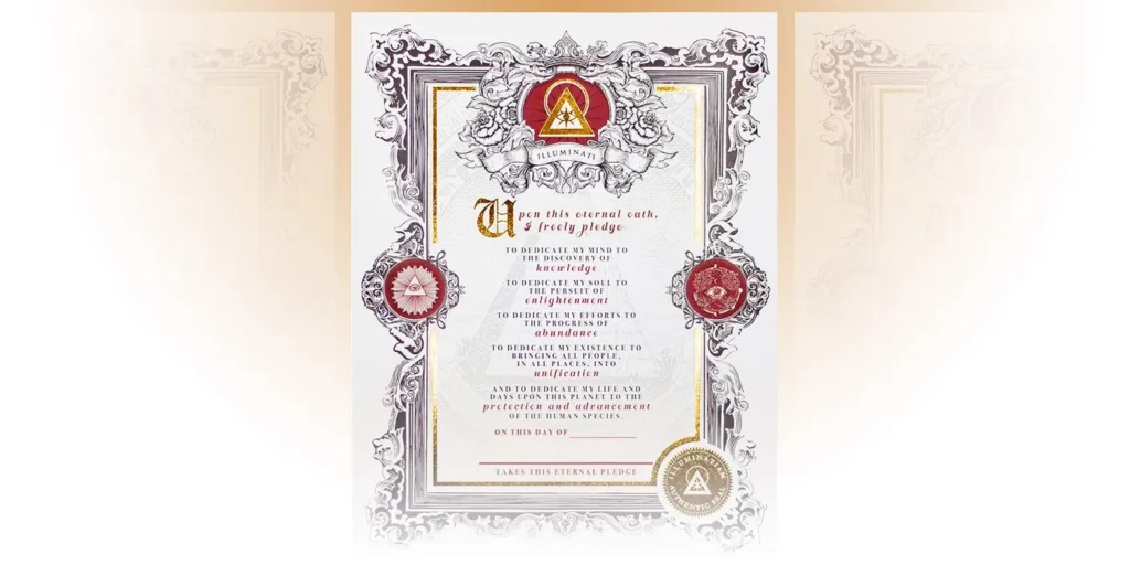 Since its inception, members of the Illuminati have dedicated themselves to the advancement of the human race by taking Oaths of Commitment. These oaths are a fundamental tradition of the Illuminati, in the form of written contracts between one person and all members of humanity. The first oath of the Illuminati is called the Eternal Oath.